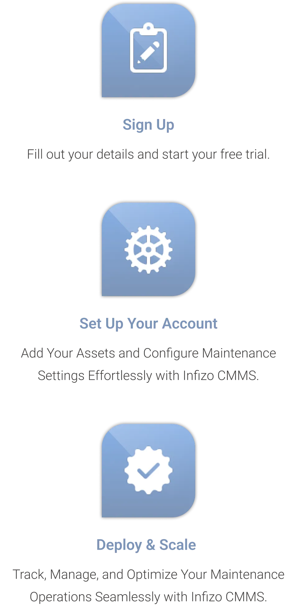 Sign Up, Set Up, and Start Managing Maintenance Effortlessly with Infizo CMMS Today